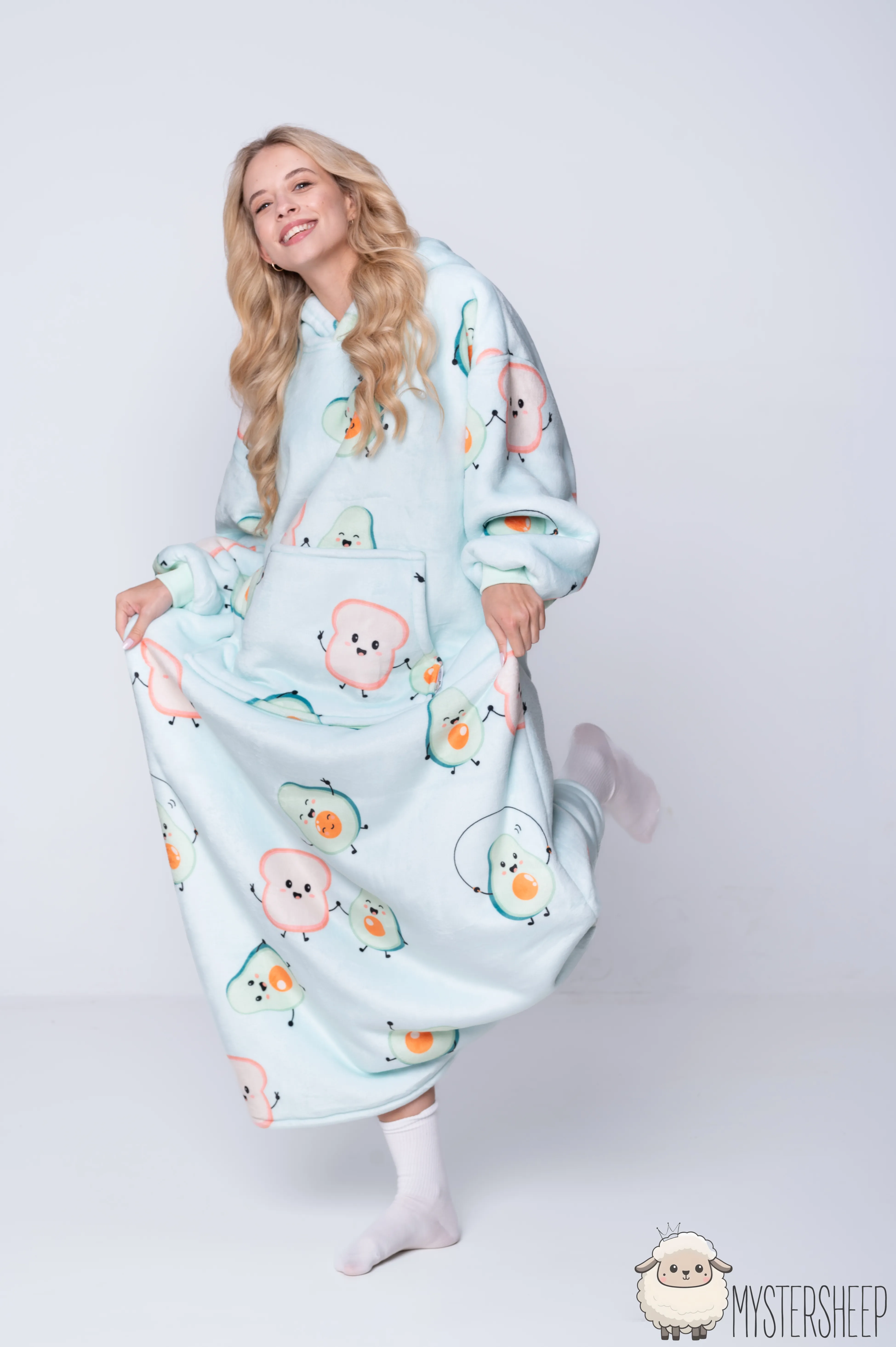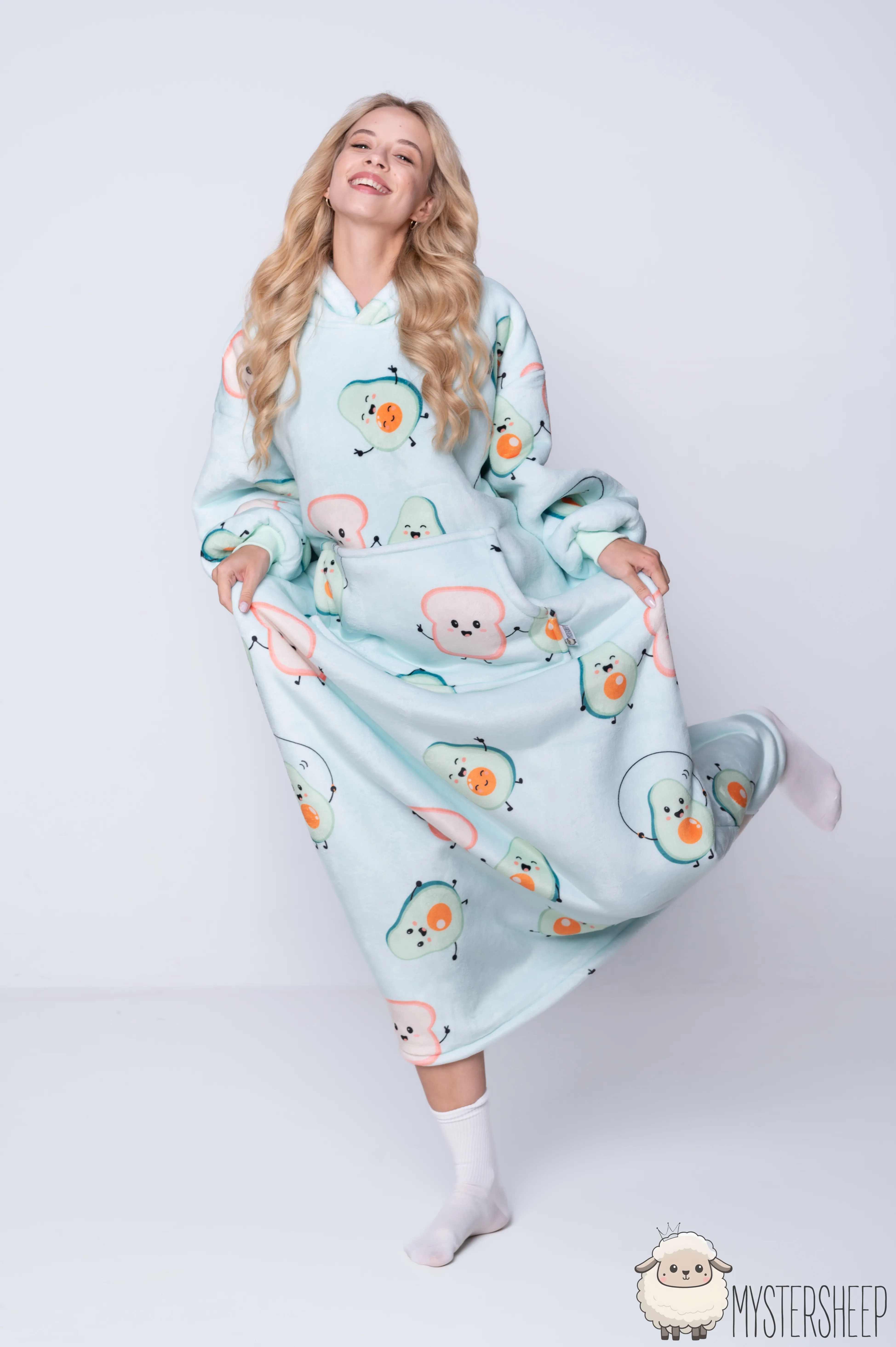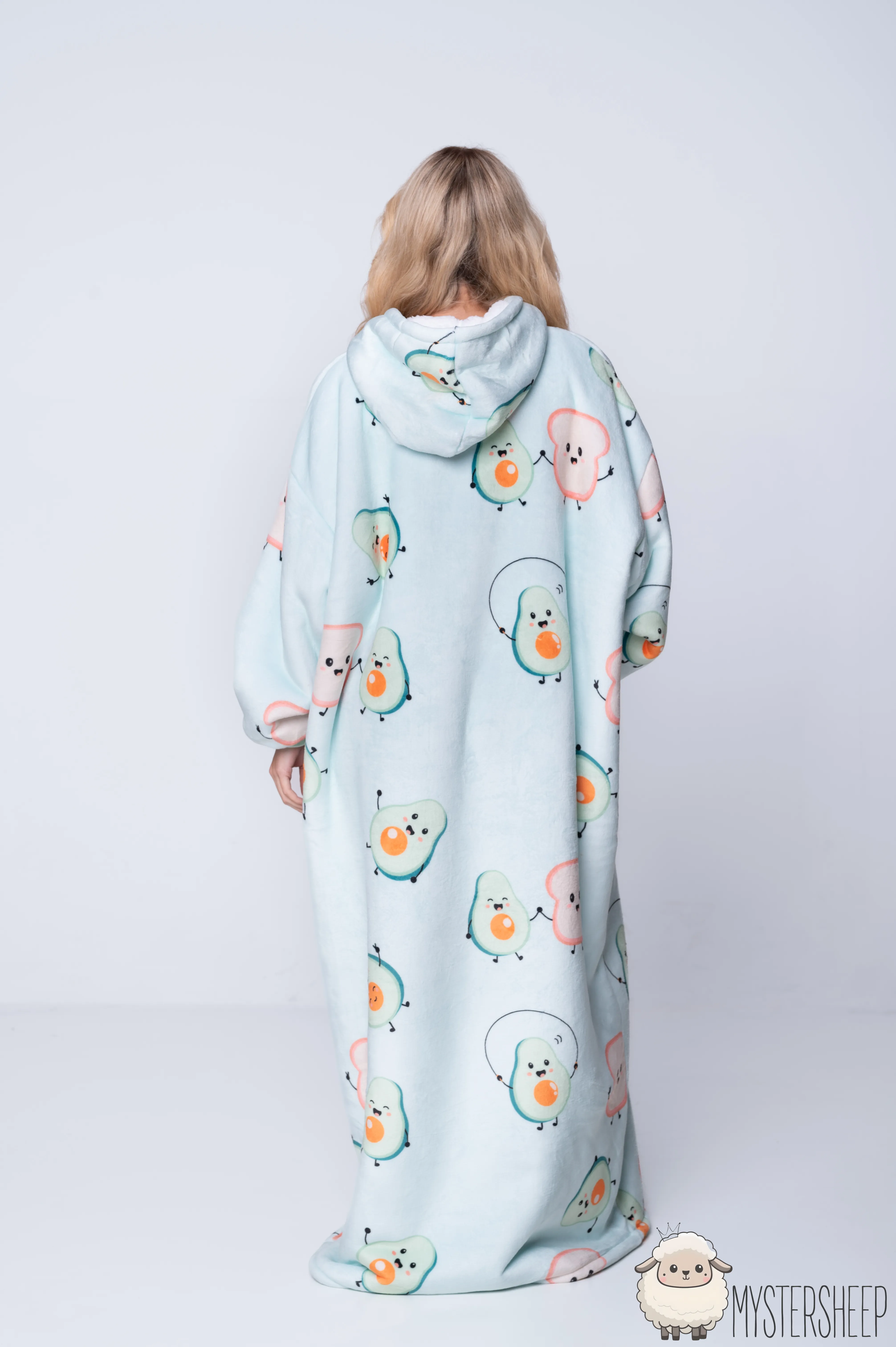 Z humorem i wygodą – ta kocobluza XXL to idealna propozycja dla fanów miękkich tkanin i śniadaniowego vibe’u! Niebieska bluza koc z tostami i awokado nie tylko rozgrzewa, ale też poprawia nastrój. Przytulna jak ulubiony koc, otuli Cię w każdej chwili relaksu. Ta urocza koc bluza to również praktyczna koco bluza, dostępna jako kocobluza damska i kocobluza męska – w sam raz na domowe chillowanie z przymrużeniem oka.