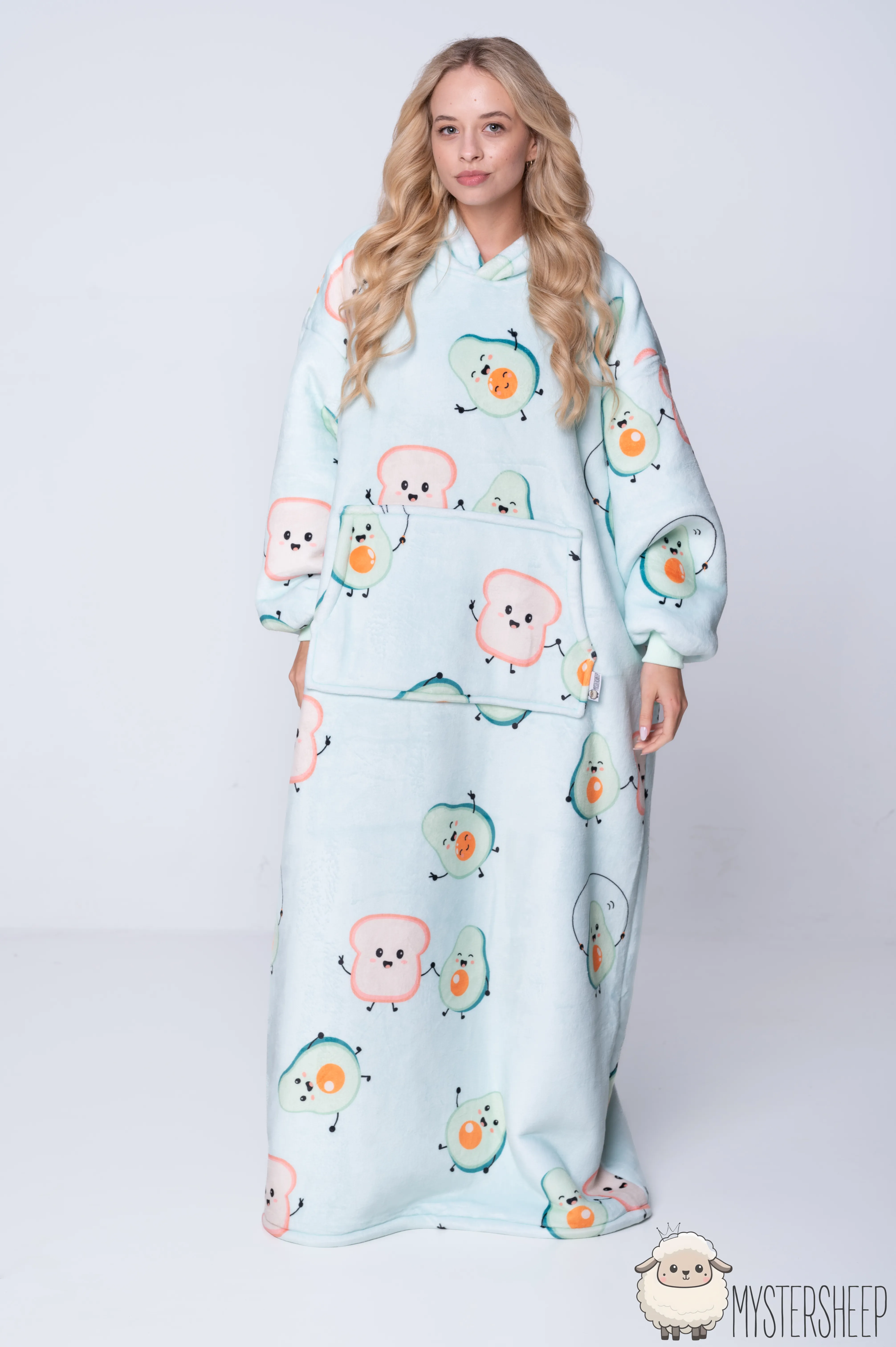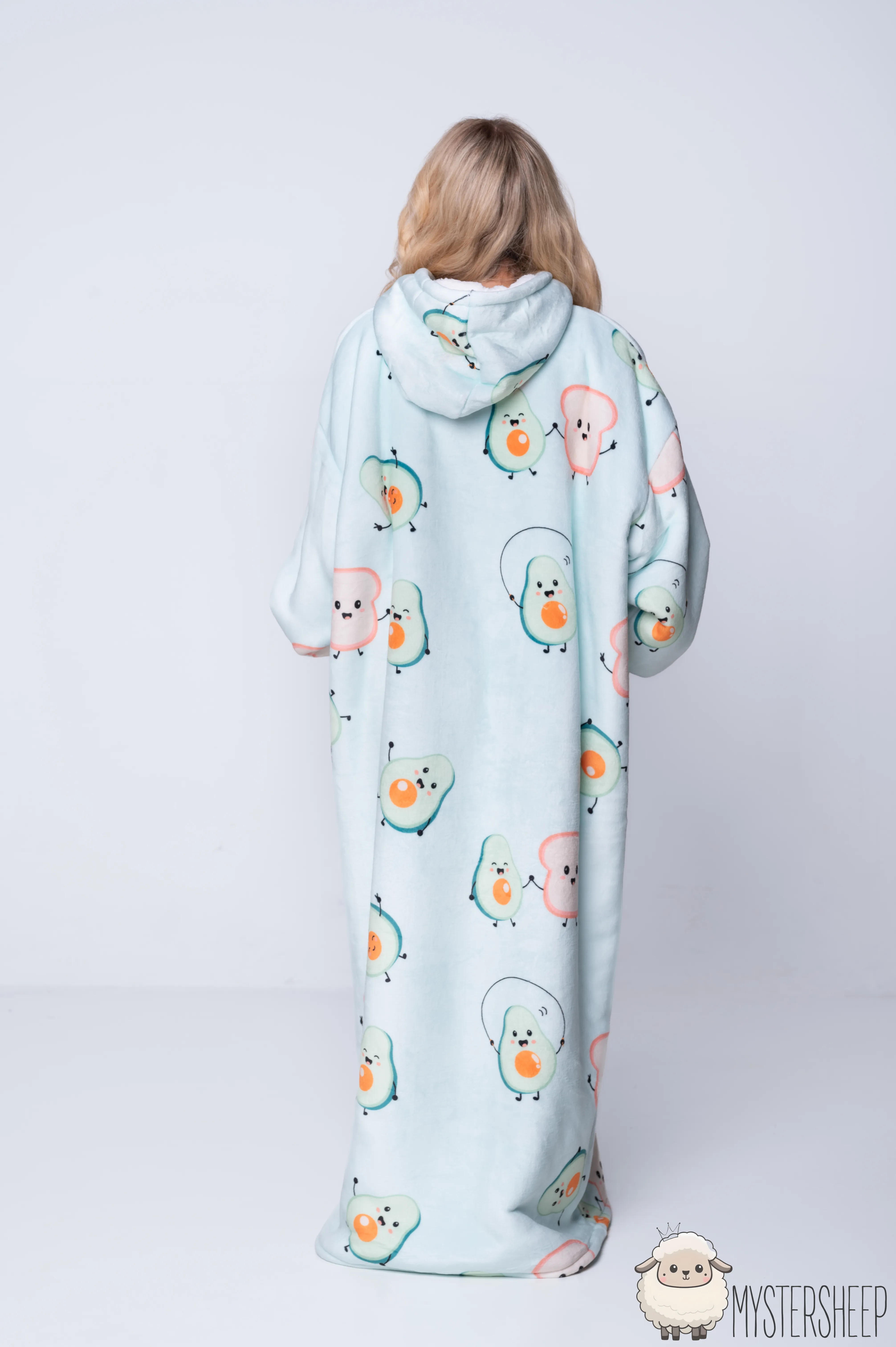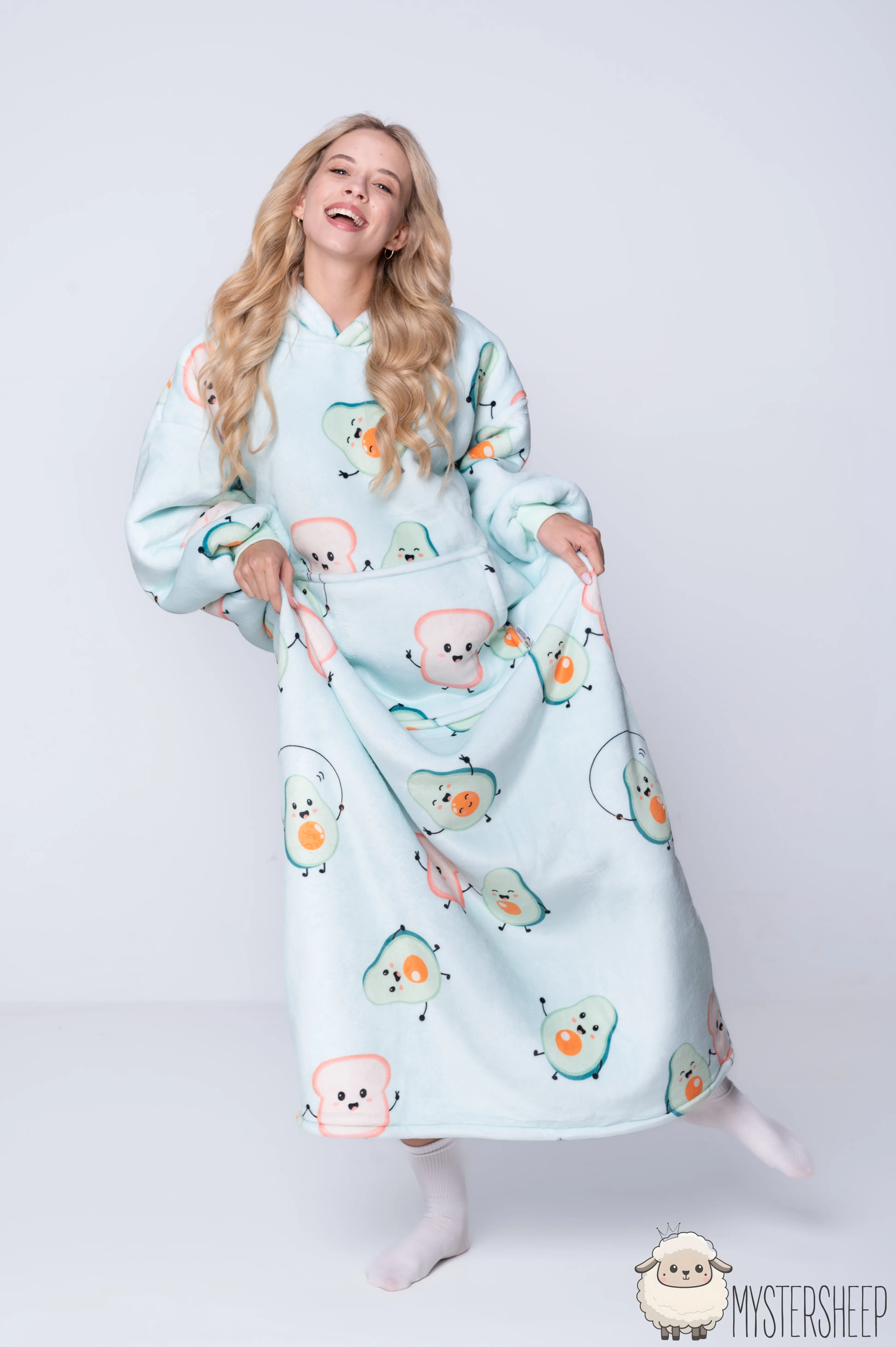 Z humorem i wygodą – ta kocobluza XXL to idealna propozycja dla fanów miękkich tkanin i śniadaniowego vibe’u! Niebieska bluza koc z tostami i awokado nie tylko rozgrzewa, ale też poprawia nastrój. Przytulna jak ulubiony koc, otuli Cię w każdej chwili relaksu. Ta urocza koc bluza to również praktyczna koco bluza, dostępna jako kocobluza damska i kocobluza męska – w sam raz na domowe chillowanie z przymrużeniem oka.