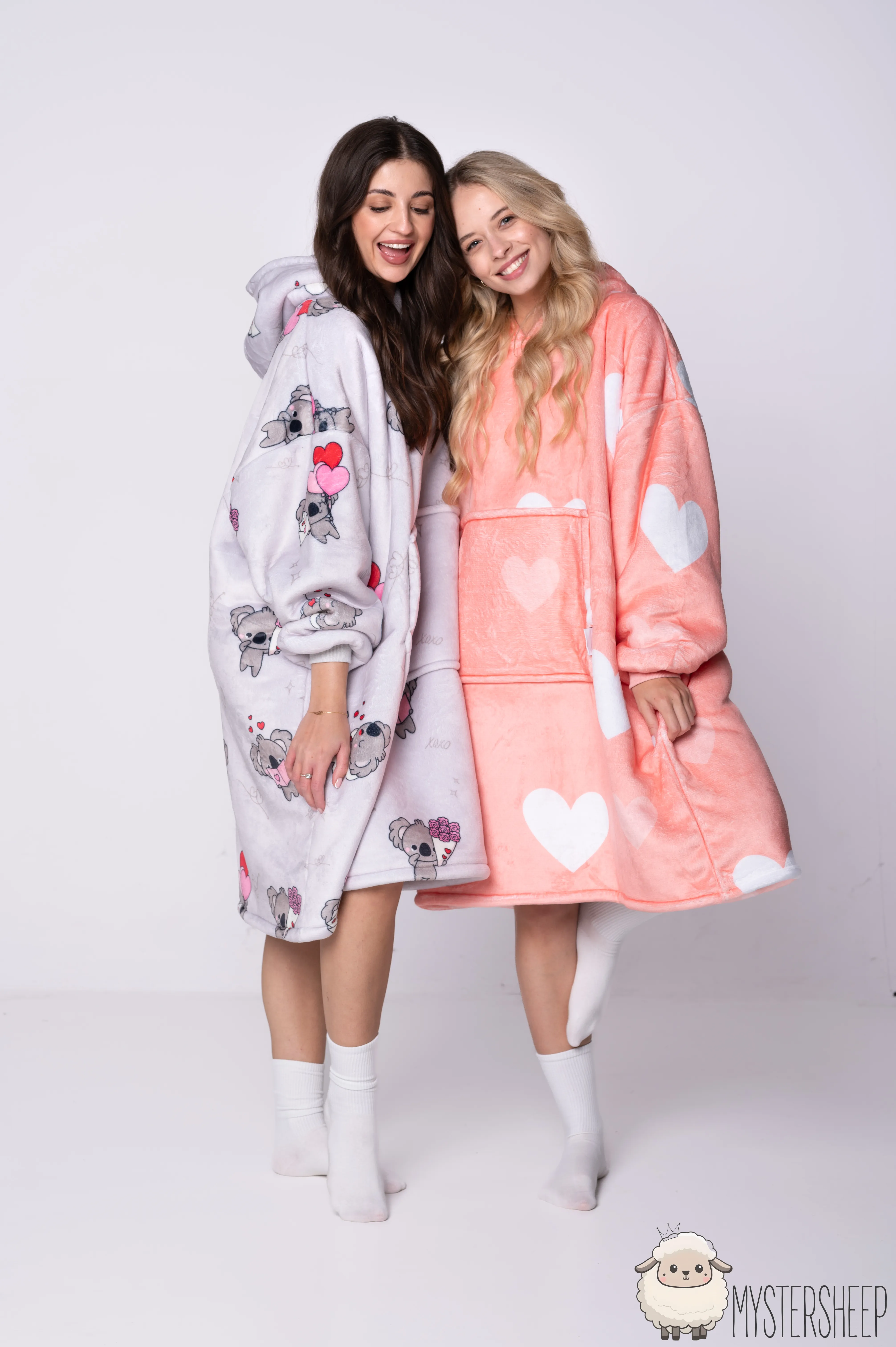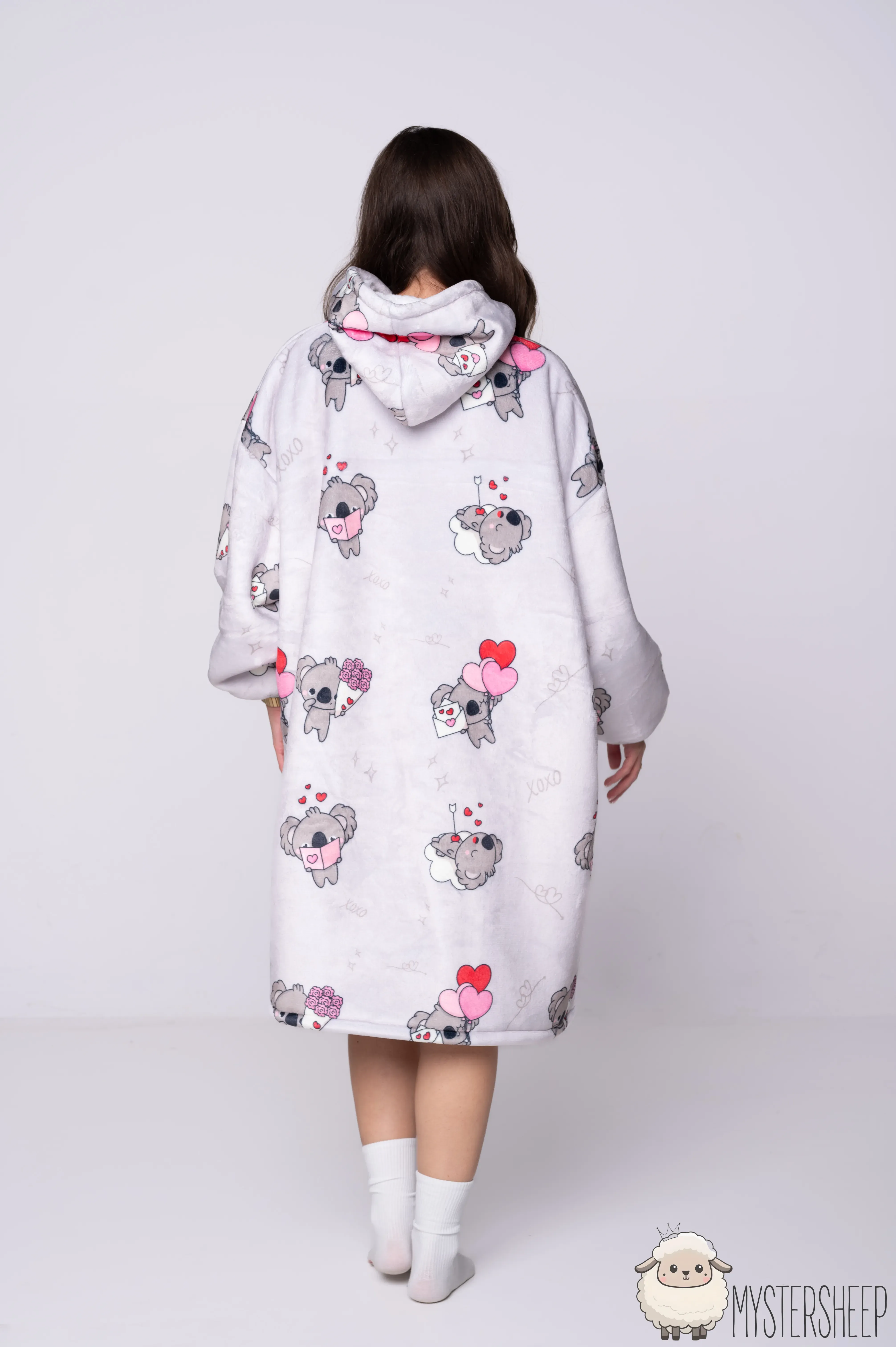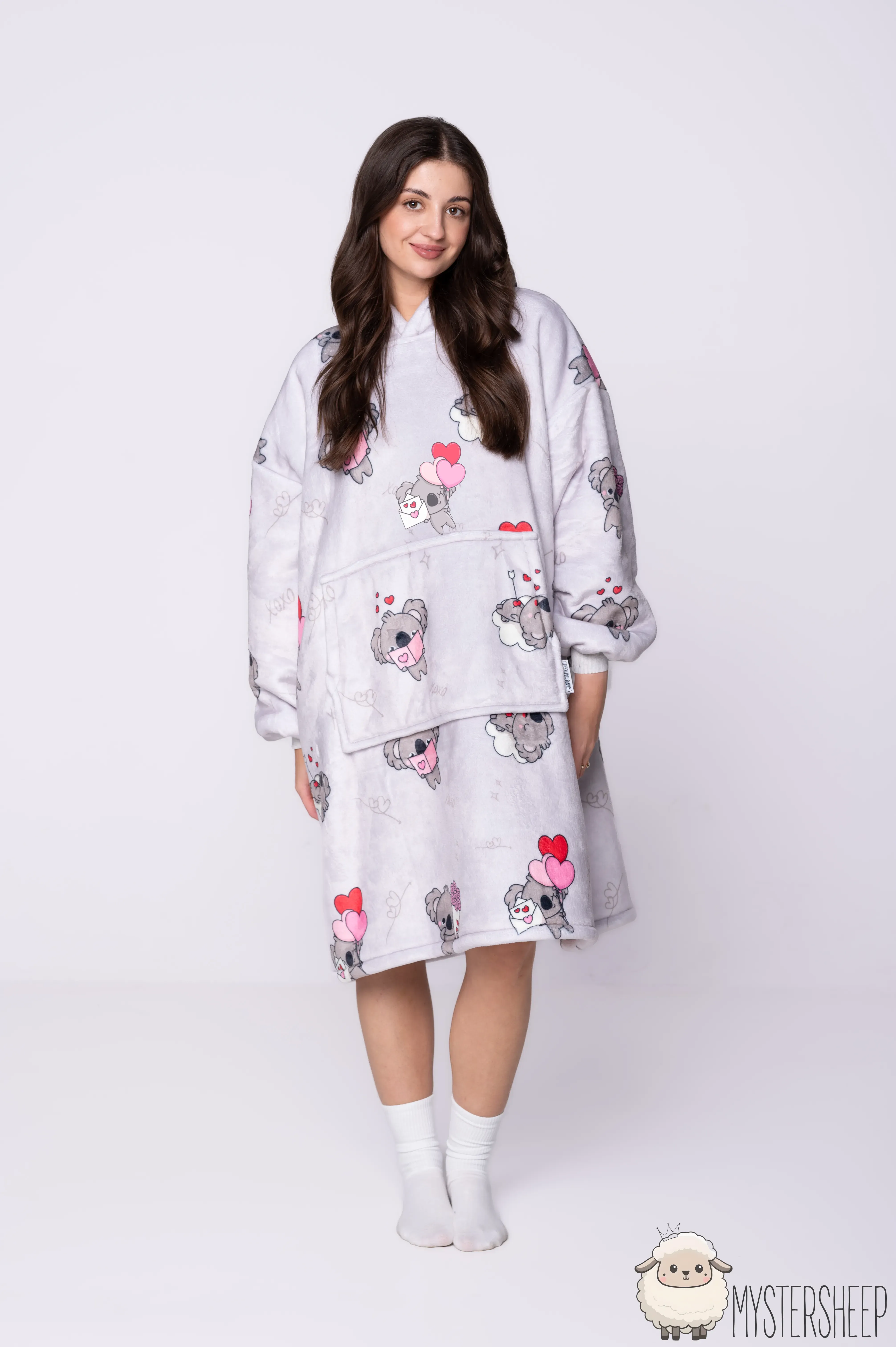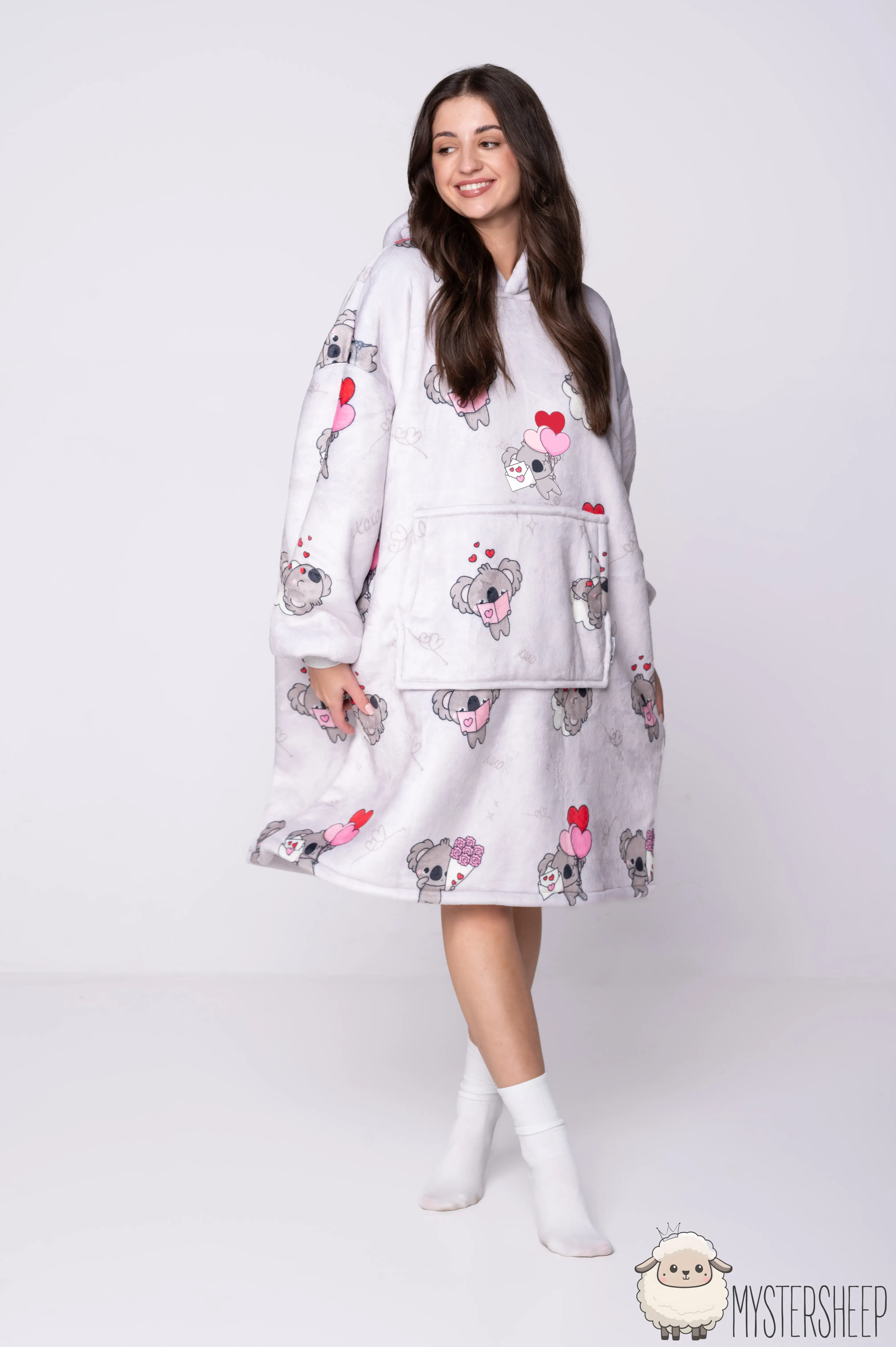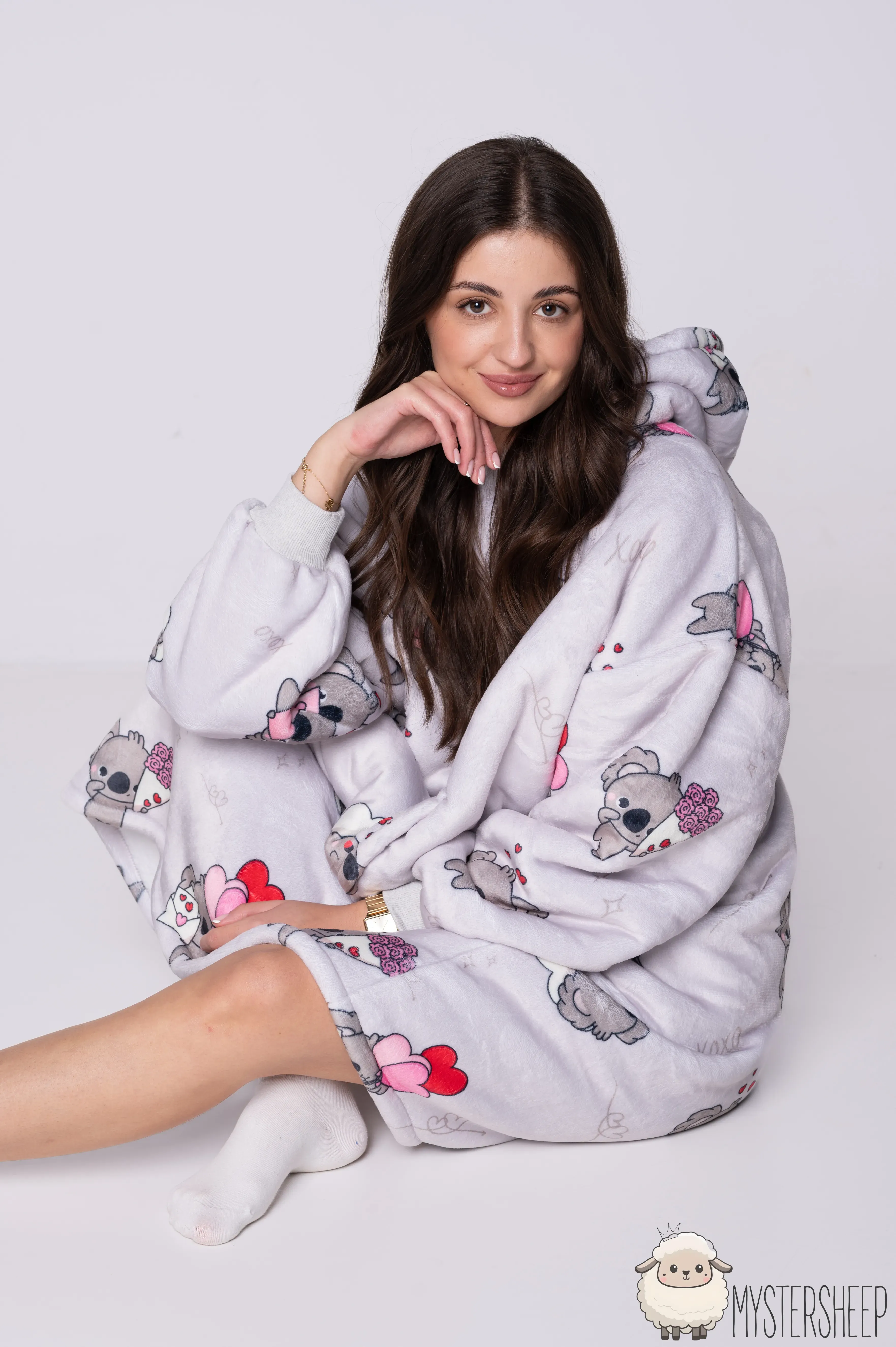 Ta kocobluza to prawdziwa porcja czułości – idealna dla wszystkich fanów koali i mięciutkiego relaksu! Jasnoszara bluza koc z uroczym motywem zakochanych misiów wprowadzi Cię w błogi nastrój. Jej luźny krój otuli jak najwygodniejszy koc, zapewniając pełnię komfortu. Ta urocza koc bluza sprawdzi się doskonale jako kocobluza damska albo kocobluza męska – miłość do wygody nie zna granic!