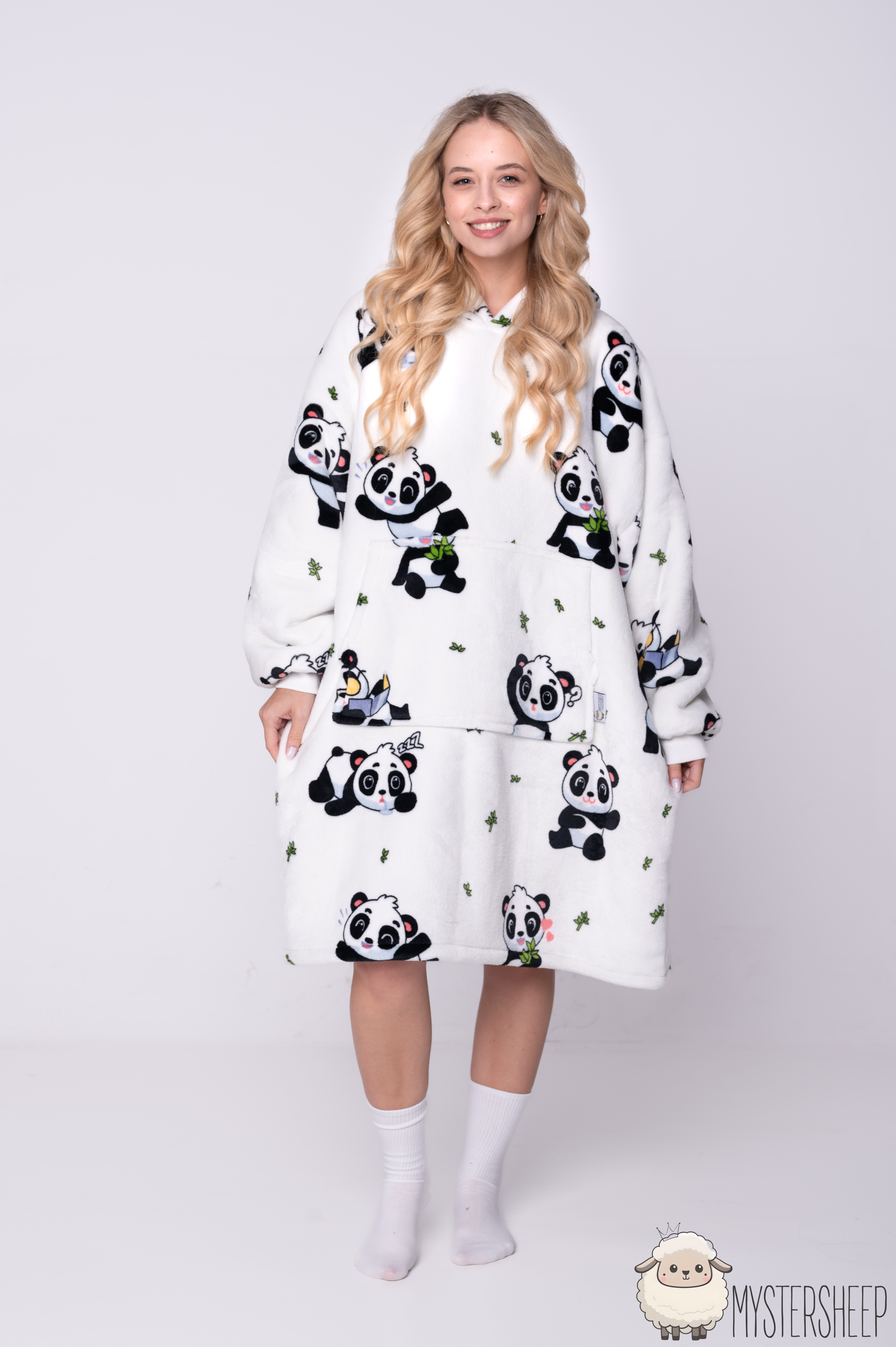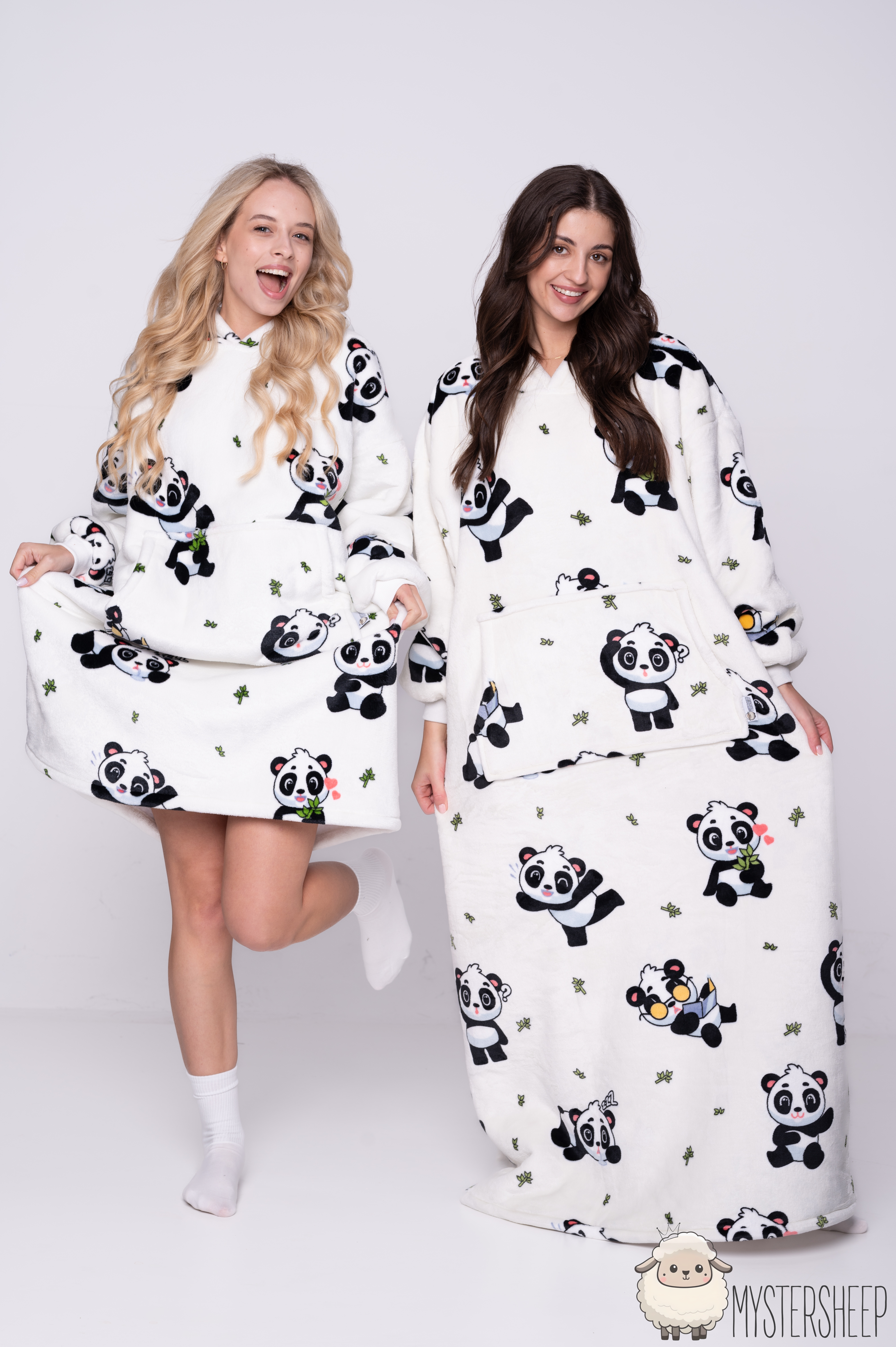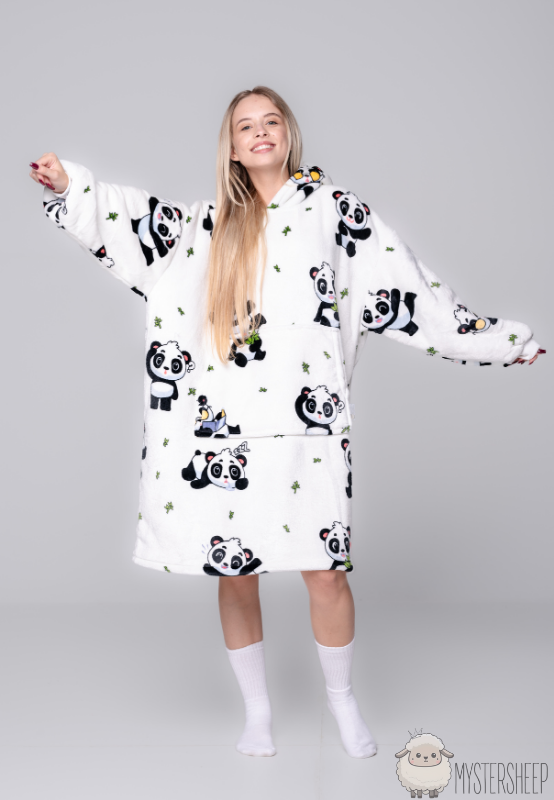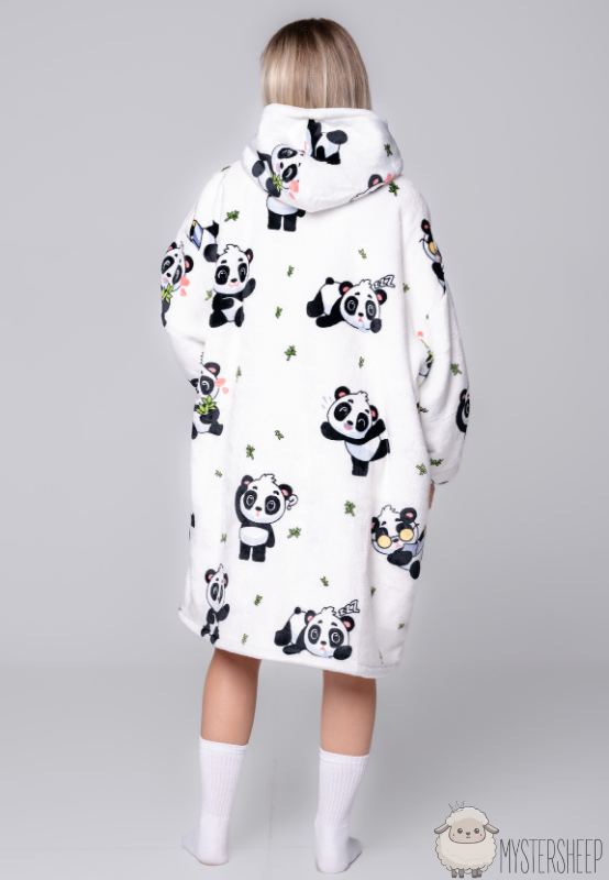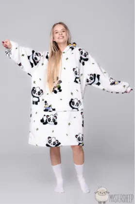 Ta kocobluza to miękkość i urok w najbardziej uroczej wersji! Biała, puszysta bluza koc z rozkosznymi pandami to idealny wybór dla tych, którzy kochają przytulność i zabawne wzory. Otula jak ulubiony koc, zapewniając ciepło w każdym zakątku domu. Ta pełna wdzięku koc bluza to również wygodna koco bluza, dostępna jako kocobluza damska i kocobluza męska. Kiedy otulą Cię pandy, chłodne wieczory od razu stają się przyjemniejsze!